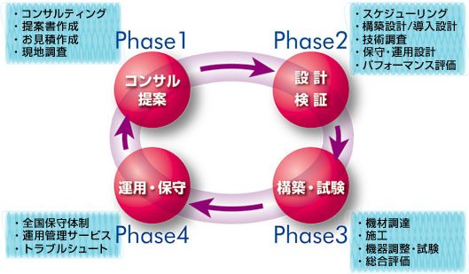 古河電工はお客様の立場に立ち、コンサルティングからシステムの設計、構築、保守管理に至る一貫したサービスを提供し、お客様の「明日のオフィス」を実現します。 |