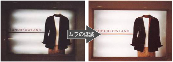 「MCPET」のメリットは、照明の照度向上と省エネだ。高い反射率でLEDモジュール数を削減しつつ、照度を向上させることができる。内照式看板への採用事例では、光源を3分の2に削減しても、平均照度を約1.6倍向上できたケースがあるほか、照明リニューアルではインバータ化と合わせて電気使用量を50%以上軽減できた。震災直後の電力供給不足の環境下では、省エネ商品として活躍した。