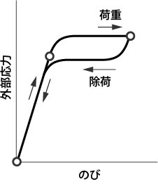 弾性領域を超えて力を加えると元の形に戻らない。