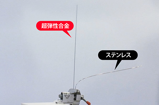 超弾性合金とステンレスの変形に対する挙動の違い
