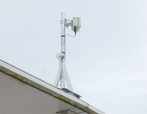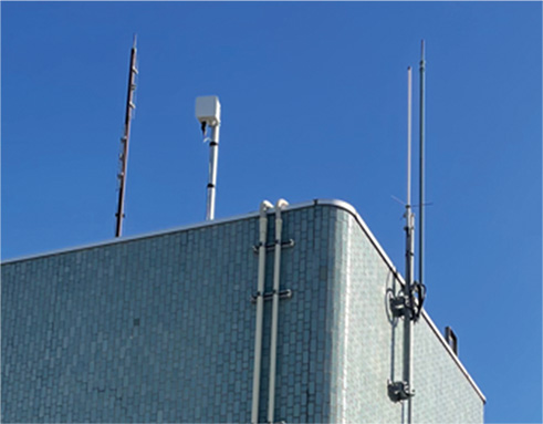 既設のFTTH設備を無線と組み合わせ、市役所と駅ビルを60GHzの周波数帯を使った無線システムで通信させることが大きな特徴です。ライセンス(無線免許)が不要な周波数帯なので導入のための事務手続きがとてもスムーズでした。通信距離は約1km、直進性が高い電波なのでお互いのアンテナから相手がみえる必要があるなどの制約もありますが、今回の要件については障害になりませんでした。降雨などにより受信電波強度が弱まった場合には、自動的に変調方式を調節して、通信をできるだけ維持する適応変調機能を備えていることも心強いシステムです。