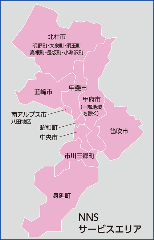 様々な自治体が、地域イントラネットと呼ばれる情報共有ネットワークを構築しています。甲府市は独自のイントラネット回線を持つ代わりに当社が専用FTTHネットワークを構築し、出先機関のほか、公民館や学校などの足回り回線として100回線以上を提供しています。近年では町村合併によるエリア拡大により、通常のFTTHではカバーできない場合は、古河電工のフレックスフィードシステムを使って伝送距離を延長することで、一元管理ができるようになっています。