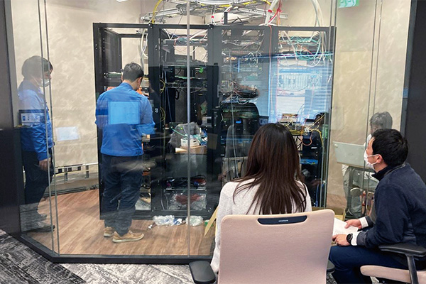 古河電工の「ブロードバンドリモートラボ(大阪)」にて、古河電工の製品だけでなく当社持ち込みの他社機器と接続し、上位から下位までシステムを一気通貫で試験を実施しました。実環境に近い条件での検証により、想定外の課題も事前に把握することができました。