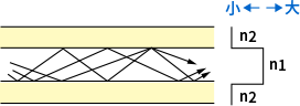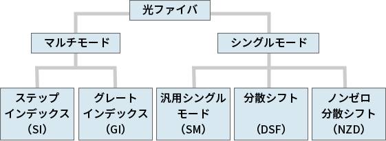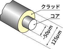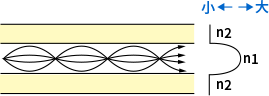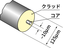 光ファイバ中での光の伝搬の仕方には幾通りかあり、それぞれをモードといいます。コア径を小さくしていくと伝搬できるモードが減っていき、ついには基本モードだけが残ります。このように一つのモードのみを通す光ファイバをシングルモード(単一モード)光ファイバ(Single Mode optical fiber:SM)といいます。