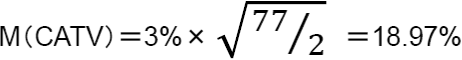 CATV帯域で77chあって、各chの変調度が全て等しく3%のとき、