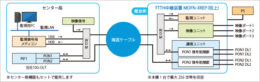 10G中継装置によるシステム例(離島エリアの加入者収容)