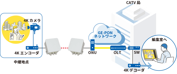 河川や鉄道を横断する場合でも、最大1kmの長距離通信により高速なネットワークを無線で構築