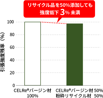 CELRe®は粉砕時のセルロース繊維の切断による材料の強度低下が起こりにくいため、マテリアルリサイクルが可能な低環境負荷材料です。お客様の製品の資源投入量・消費量を低減し、サーキュラーエコノミーの実現に貢献します。