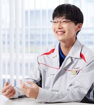 ケーブルの外被を成形するシース工程を担当。工程設計、品質・作業改善のほか、現場の安全対策まで行う。