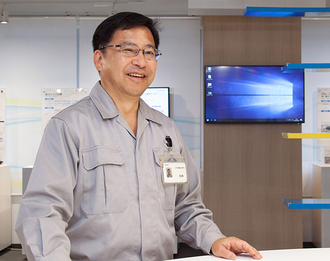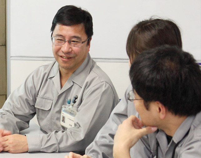 - 担任资深研究员的加纳从大学的研究室时期开始,就一直致力于粘着技术和高分子材料的研究工作,现在还担任着日本粘合学会的理事。