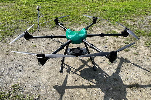 通过在美乡町开展的大约2年的实证实验,我们专心改进了特殊大型无人机。我们一边倾听一线作业者的心声、要求,一边实施几百次的飞行试验,刷新性能,成功地开发出适合一线的方法、减轻一线作业者负担的无人机。
