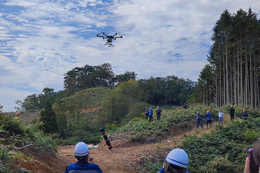在这样的背景下开展的实证实验也将古河产业的无人机领域的检查、测量、运输等的业绩、知识应用到林业领域,成了重要的场合。