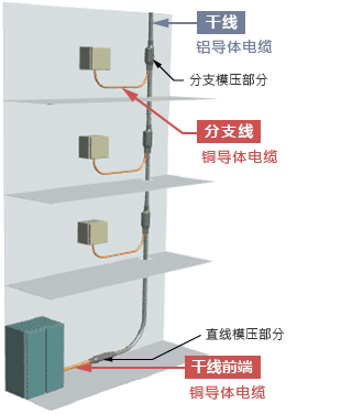 从楼宇及公寓等的配电室向各楼层供电时,使用最广的是已在电线制造商的工厂将分支线连接到必要位置上的低压预分支电缆。因其干线上的分支部均在工厂加工,无需现场加工,且具有电缆布设更容易、质量更稳定等特点,现已成为楼宇内配电电缆的主流。