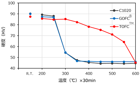 - 即使在300 ℃以上的高温环境中仍可保持无氧铜的硬度,抑制翘曲或变形