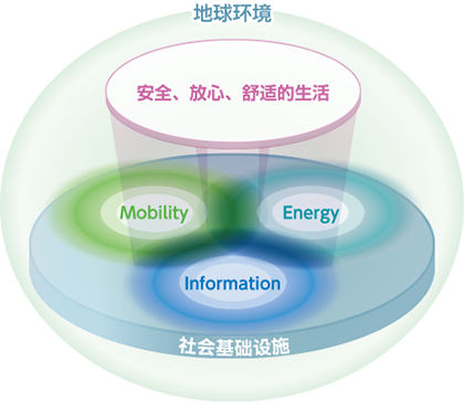 古河电工集团将着眼于2030年,以“保护地球环境”、“实现安全、放心、舒适的生活”为目标,创建融合Information、Energy、Mobility 的社会基础设施。