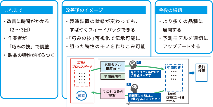 データ活用した要因分析 プロセスデータから特性を予測するモデルを開発し、狙った特性のモノを作りこむ