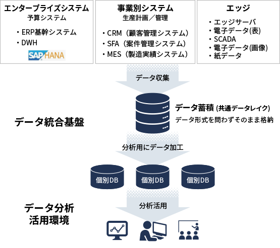 データの蓄積、分析を全社で一元的に管理する「データ統合基盤」を設置し、データ集約と活用の浸透を図っています。