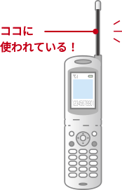 ガラケーなどに付属されているアンテナには、ニッケルとチタンを混ぜた合金(NT合金)が使われています。弾性に優れた性質で、曲げても折れにくく、強くてしなやかな合金です。