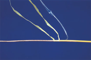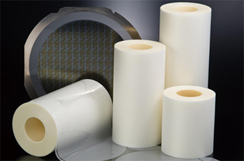 強い粘着力を持つのに、UV(紫外線)を照射すると粘着力がなくなる不思議なテープで、半導体チップを製造する工程でお役立ちしています。