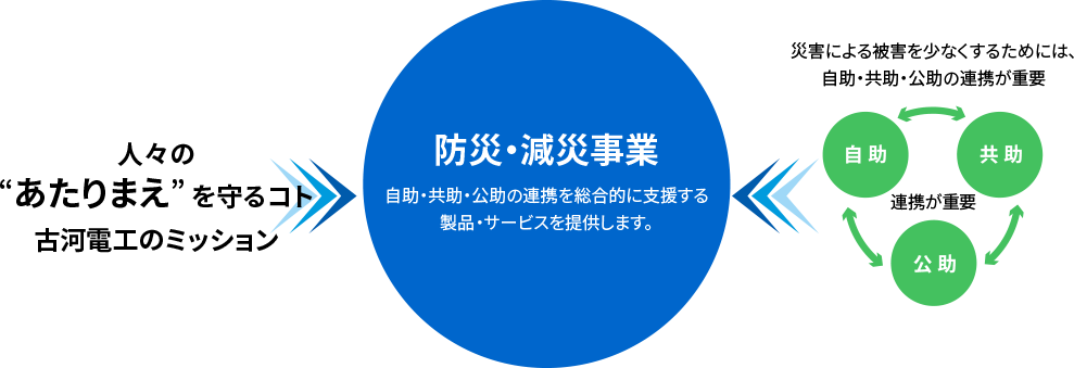 そこで私たちは人々の“あたりまえ”を守るコトをミッションとして防災・減災事業に取り組みます。