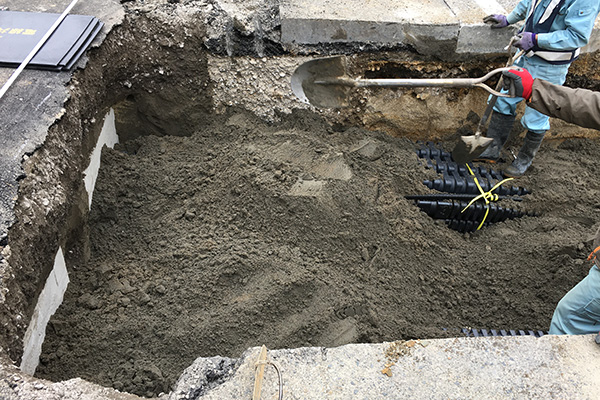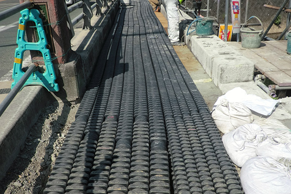 In addition, when EFLEX Square is used, it can be buried with a reduced amount of excavation, as shown in this photo. -