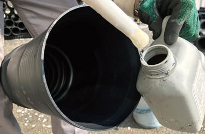 (Note) Apply lubricant firmly to the rubber seal on the male side and inner connecting surface of the female side. Insufficient coating may cause the packing to come off during insertion.