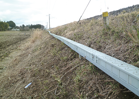 Green Trough is an environmentally friendly cable trough made primarily from waste plastic. Above-ground laying of cables shortens the construction period and improves workability.