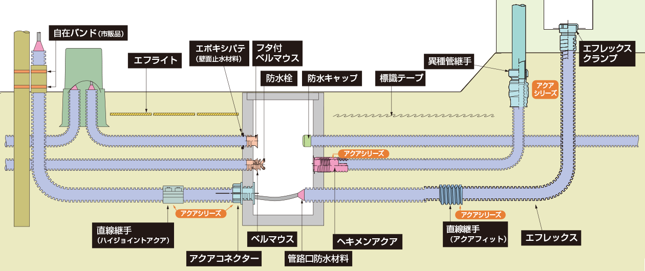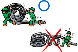 詳細に関しては、技術サポート情報のエンジニアリンク資料の中に施工要領書「エフレックス布設作業工法書」を用意しておりますので、ご用命ください。