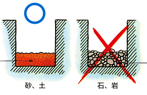 ⑤ ハンドホール(マンホール)壁面付近の土砂填圧は、十分に行ってください。