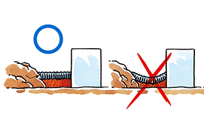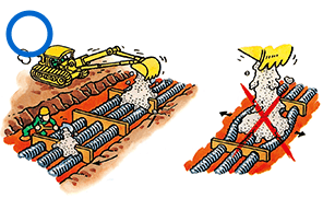 ④ 重機での埋め戻しは、砂を間隔ゲージの上に静かに落としてください。