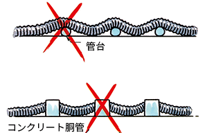 ⑦ 管台、コンクリート部分胴締は、行わないでください。