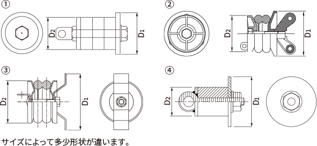 | 品番 | 対応可能な壁面部分 | D1 (約mm) |