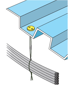 ● デッキプレートにΦ5mmの下穴で簡単に取り付けできます ● 長さ250mmの長い結束線で天井から離したケーブル支持もできます
