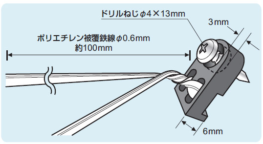 製品を手で持った取り付けは、バインド線の巻き付け、挟まれによるケガの原因となりますので行わないでください