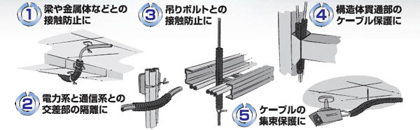 軽く・可とう性があり・つぶれにくい波付保護管で、ケーブルの保護や集束など、