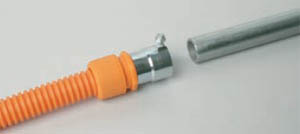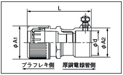 (1)プラフレキCDと厚鋼電線管(ストレート部)を接続するのに使用します。