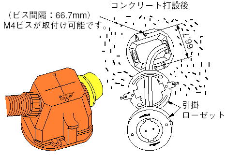 (2)引掛ローゼットを介して10kgまでの照明器具の取付けが可能です。