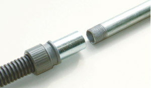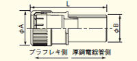 プラフレキPFと厚鋼電線管との接続に使用します。接続はワンタッチで出来ます。
