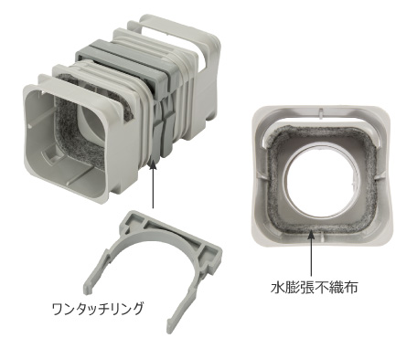 「角型アクアフリー」など、作業性、止水性に優れた部材を揃え、あらゆる施工現場に対応します。
