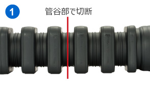 管に切断溝があります。他の継手を使用する際も切断位置は同じです。 - 工具不要