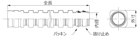 水膨張不織布を使用しゴムパッキンレス。管を軽い力で差し込めます。 - 切断位置が分かりやすい