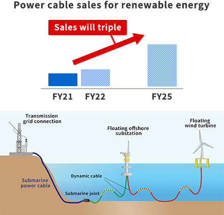 In the power cable business, efforts are being made to grow the business targeting Japan extra-high voltage underground power cable, Japan renewable energy (submarine power cable + underground power cable) and overseas submarine power cable (Asia). In particular, in the area of renewable energy in Japan, we plan to triple sales by FY2025 following the increased installation of renewable energy.