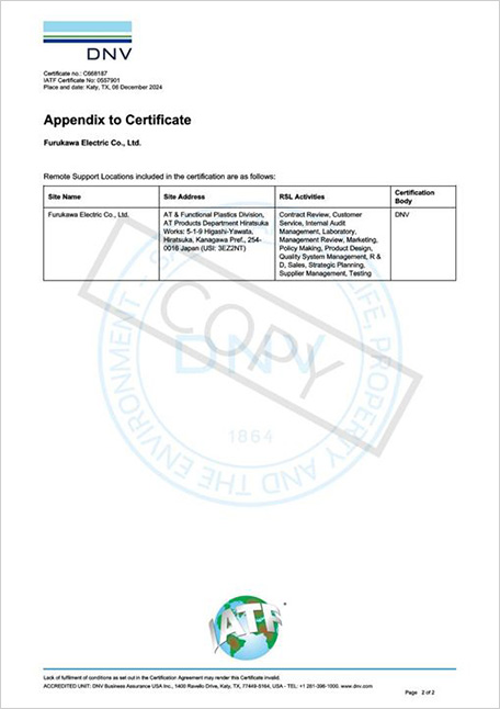 IATF16949:2016 certification was obtained for Die Attach Film for semiconductor produced at the AT Mie Works of the AT & Functional Plastics Division.