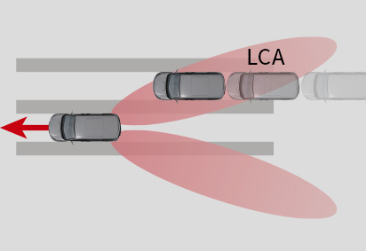 When changing lanes, detect vehicles approaching in the other lane at a faster speed.
