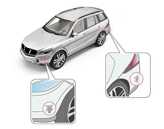 The peripheral monitoring radar developed and manufactured by Furukawa AS, a member of the Furukawa Electric Group, is one type of ADAS. When driving and also when stopped, the radar detects obstructions in front and behind the vehicle, as well as objects approaching from blind spots, and it alerts the driver, thereby supporting safe lane changes and parking.