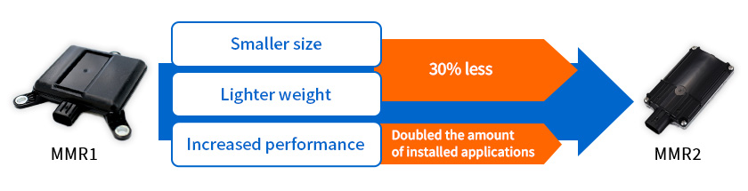 In 2022, the 2nd generation MMR2 peripheral monitoring radar was developed and mass production started. Along with further improving the basic radar functions including detection range (distance and angle), detection speed and accuracy and fixed speed, the newly developed radar is also smaller and more lightweight. Behind these achievements are the extraordinary challenges undertaken by Furukawa AS.