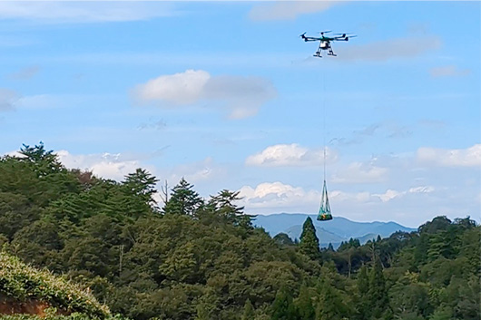 Furukawa Electric and Furukawa Sangyo partnered with Shimane Prefecture in 2021 with the aim of contributing to solving the issues facing the forestry industry by utilizing the accumulated know-how in drones through a “project for reducing forestry workload” involving the transportation of saplings. The following year in 2022, the companies partnered with Misato Town to begin a “forestry innovation project” involving the transportation of materials for preventing animal damage.