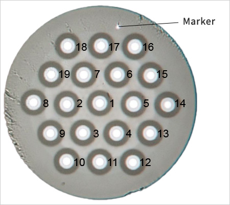 General-use optical fiber conforming to international standards has a diameter of 125μm (0.125mm). This is the same thickness as one strand of hair. Multicore fiber normally contains 4-5 cores with a diameter of 10μm each, and fiber with a slightly larger diameter contains 19 cores. It is planned to install this fiber mainly as long-length submarine cable.