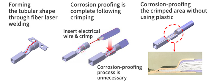 In response, completely covering the aluminum and copper joint with plastic was considered as a way to prevent the infiltration of water. However, this would lengthen the wiring harness manufacturing process and lead to higher costs. As a result, shifting to aluminum wiring harnesses has been viewed to be difficult.