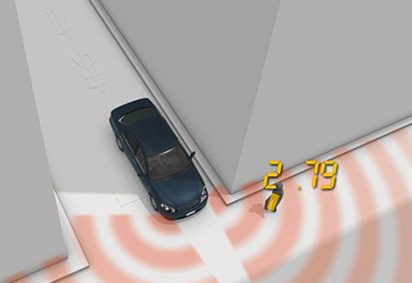 This detects pedestrians coming from the side when the car is about to come out of an alley.
